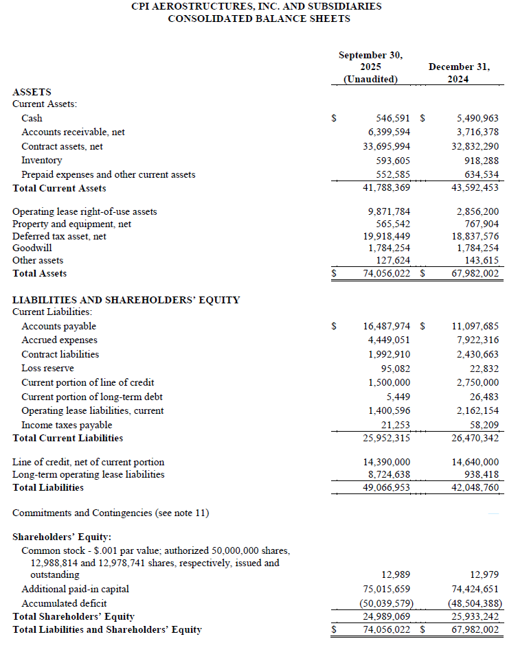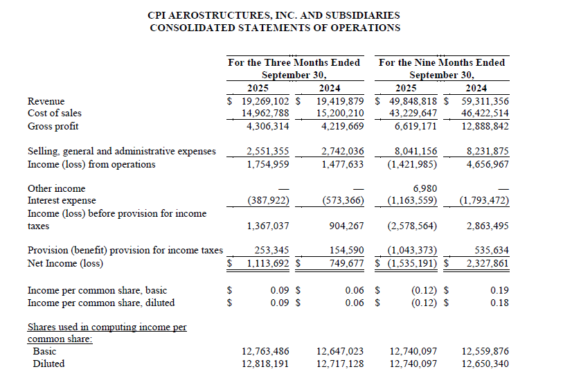 CPI Aerostructures Reports Third Quarter And Nine Month 2025 Results